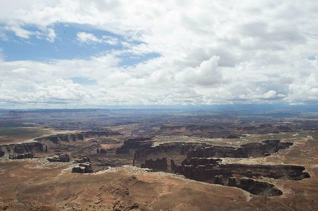 在峡谷地国家公园的时间差不多只有2个多小时吧,如果不走长途trail,即使算上左边我没去的那条线,半天也可以搞定了,我觉得三个地方一定要去,Windows7的桌面之一——Mesa Arch,最南端的Grand View Point Overlook,还有Green River Overlook。