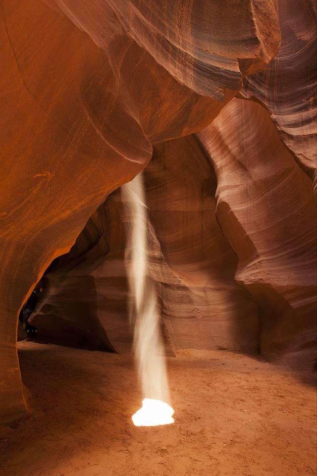 峡谷很小,但是大家还是很有次序的,摄影团拍照的时候,带团的人会清场周围所有的游客,然后对着光束铲沙子,形成一组组奇妙的光束。我们这个摄影团居然只有三个人,所以都可以在比较好的角度拍摄,有些摄影团有10几个人,那就凑合着吧。