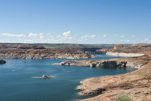 鲍威尔湖离Page镇很近,从Page出发走US-89 North,过了格兰水坝的大桥后,可以在路边看到有个格兰峡谷的游客中心,可以花钱参加格兰大坝的tour,还能获得很多关于格兰峡谷和鲍威尔湖的资料,还有个小型的博物馆介绍这个人工湖和大坝的历史,当然,这里也是拍摄大坝和鲍威尔湖的一个好地方,建议可以停留一下。
