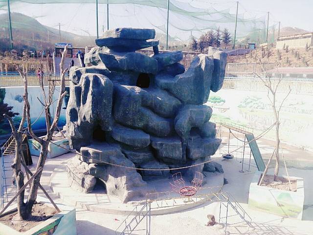一直往里走,我们到达了五龙山动物园,里面动物种类挺多,刚进去就能看到一座假山~猴山。