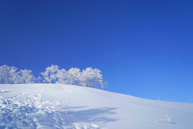 上到大秃顶山顶,马上被眼前的美景震憾了,无法用言语表达当时的激动。雪白的山、雪白的树、蔚蓝的天空,这就是梦想中的景象呀。