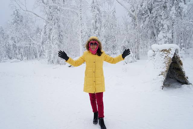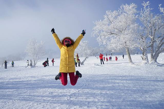 景点里有导游,她说我们今天运气很好,因为雪下得刚刚好,把雪基本全盖住了,而且我们来的时候雪又刚好停了,所以正是游玩的好时候。