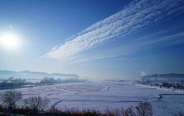 第二天早上,我们没有选择去羊草山拍日出,你可以在住的地方和老板订,380元一位,要起得比较早,而且山上很冷,我们因为已经去过大秃顶山了,所以就不想去羊草山拍了。反而想拍一下雪乡的日出,于是我又来到了昨晚拍全景的那个小山坡