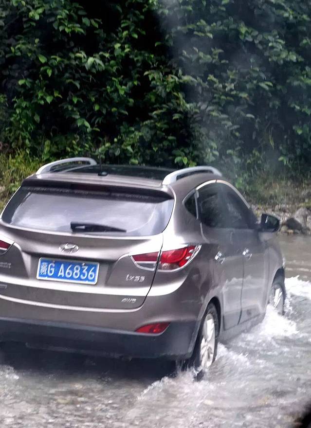 越野车在水漫路上艰难前行……