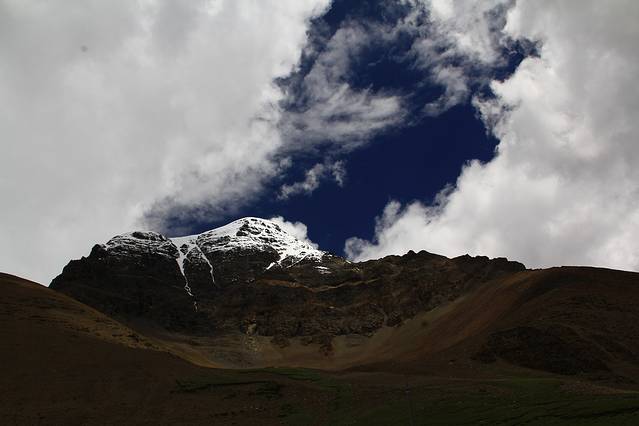 远处的那个就是。这里的海拔接近五千二,而且处在风口,风特别特别大,把所有衣服都吹透了,很快身体的体温就会被带走,想在这照个像都得靠着石头,不然站不住的。照完我们就仓皇而逃。