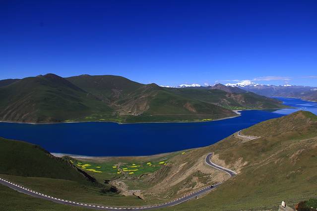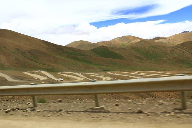 好了,我们起程了。今天的安排是从拉萨到日喀则,沿途可以看到羊卓雍错。我们的司机叫罗布,是个藏族小伙子。他的开车技术非常好,车开的特别稳,人对自己也特自信,他对我们文化很感兴趣,在你说话的时候会转头看着你,所以有时候你会觉得悬。举个例子,在到羊卓雍错的路上要翻一座山,全是U弯S弯,在过这些弯的时候你说一句话,他回头看着你。多么惊悚!!所以以后我们就学乖了,走山路忍住不说话。