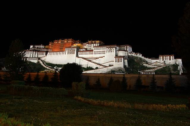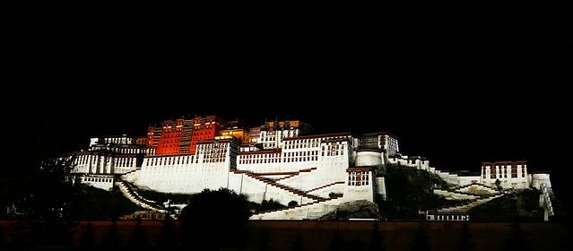 布达拉宫的灯是十点半关,我们不知道,结果照一半给熄灯了。晚上大街上都是来照夜景的人,打车就更甭想了。我们的一人打车四人上的招数也就失灵了。无奈,只好坐三轮儿回宾馆,花了四倍的价钱,体验了一把在北京失传多年的人力车功夫。我还上初中的时候北京的三轮儿就都没了,没想到多年后的今天居然在拉萨再坐一回。