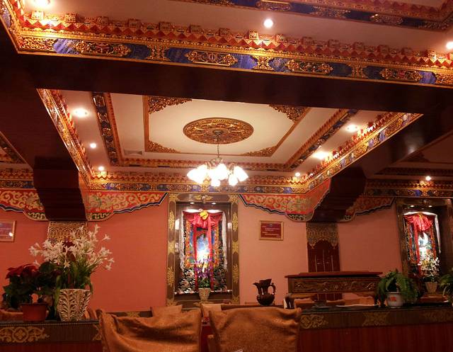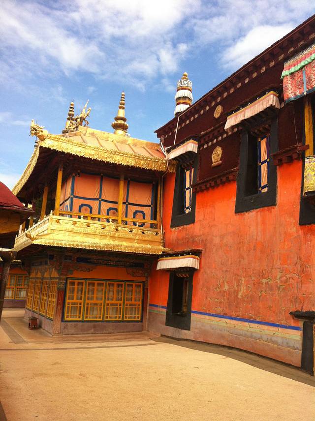 里面我大概描述一下,先是一个长长的过道,这里有很多排队的藏民,他们拿着自家的酥油等待着往油灯里添油。再往里就是一个大殿,有一尊很大的佛,具体是什么我叫不出来,很大。佛前是一个厅,有很多铺盖,是给住在里面的喇嘛休息用的。顺着往里就是有很多屋子,一字排开的,每间屋子里都有很多尊摆在台子上的佛,门口还会有说这是哪个佛哪个佛。