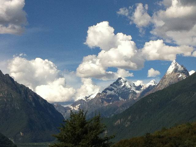 这是旅游车上拍的雪山,手机一晃就不大清楚了。