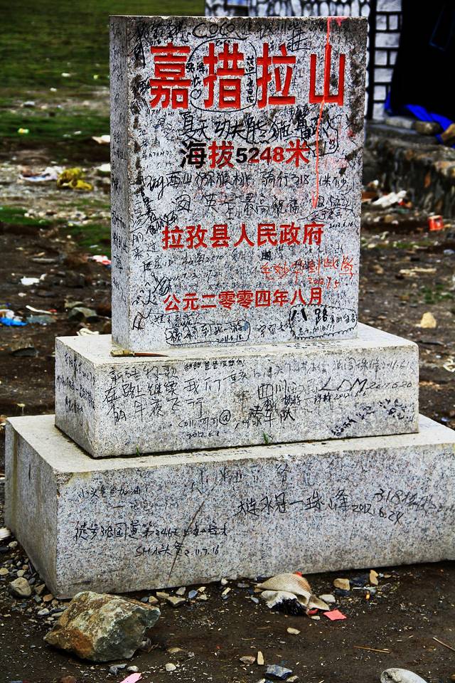 天很快就亮了,我们也很快就到了米拉山口,风很大,所以很冷,照相的人很多,大家都往前挤,所以我没法照全整个石头。
