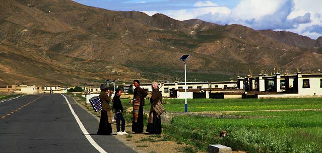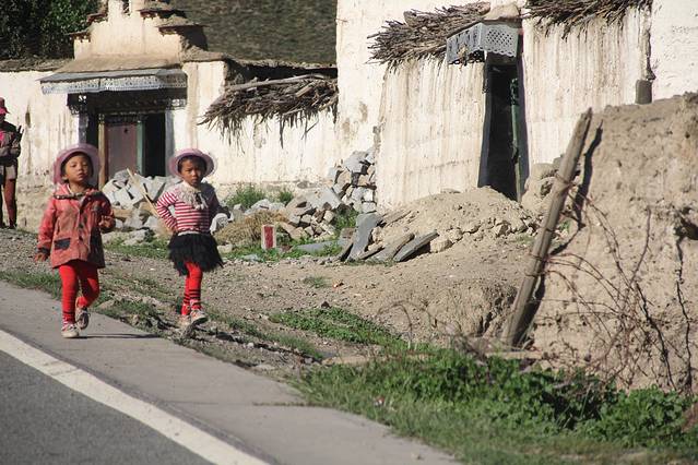 我们从日喀则去纳木错的路上有了一个小小的村庄,我猜应该是司机师傅熟悉这边,或者就是抄了个小近道,所以这条路旅游车几乎是不走的,也因此在这条路周围放羊的孩子几乎是没遇到过生人的。