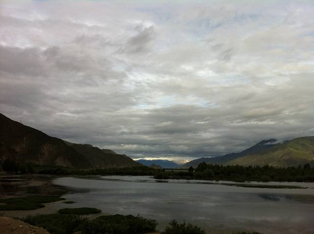 这是拉萨河的早晨,太阳还没出来,天上云也很多,看起来阴沉沉的。
