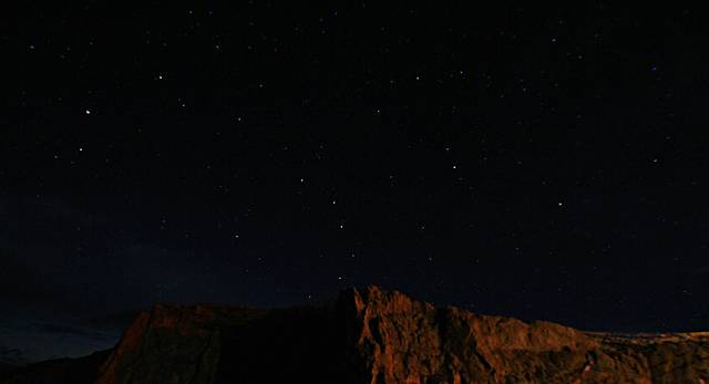 对着山照能照出来一些,你们找到北斗七星了么?图中间的地方就是,勺子把儿能看出来,下面被山挡住了一部分。其实我们头顶上的星星很美,就是因为有别处的光线干扰,照不出来。