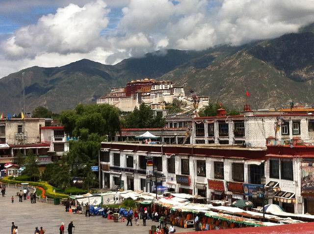 上面有一个平台,从这里可以看到布达拉宫。下面这条街就是八廓街,也叫八角街。
