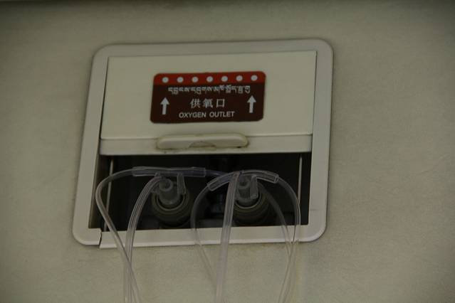 不过现在虽说车内也供氧了,我高反也缓解了,但是心情一点都没有放松,因为九点左右我们的车要过唐古拉山口,海拔在五千以上,只能听天由命了。图片是火车上的供氧口。