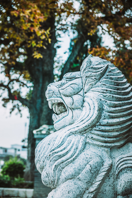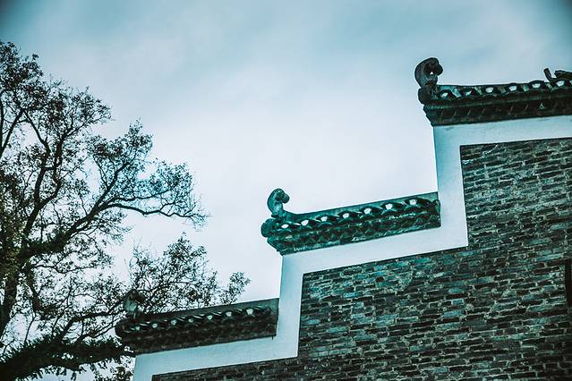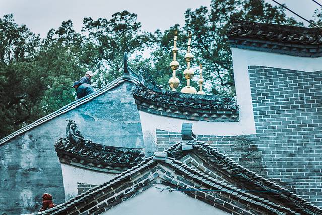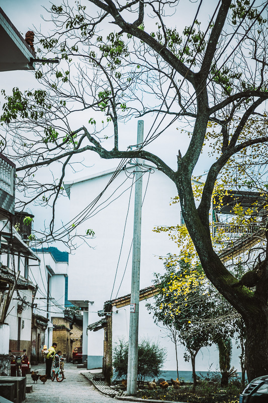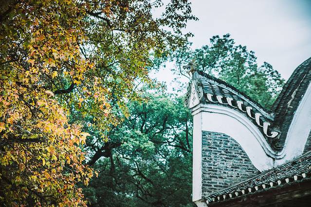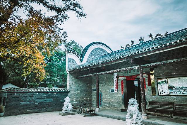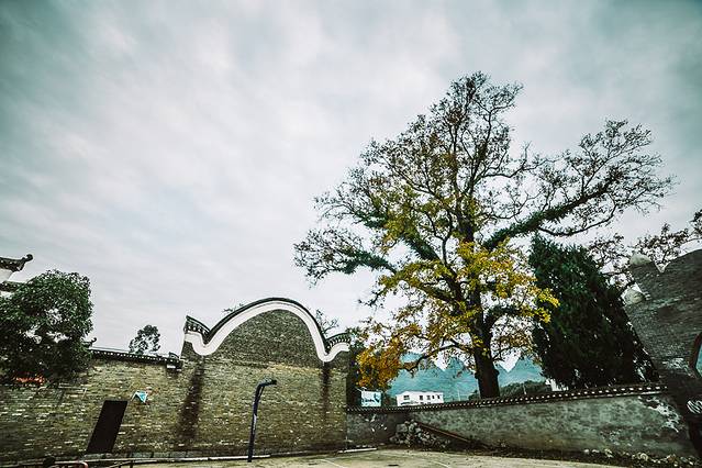 宗祠门外的大树黄叶漫漫,和白墙灰砖的建筑相得益彰,特别美丽。