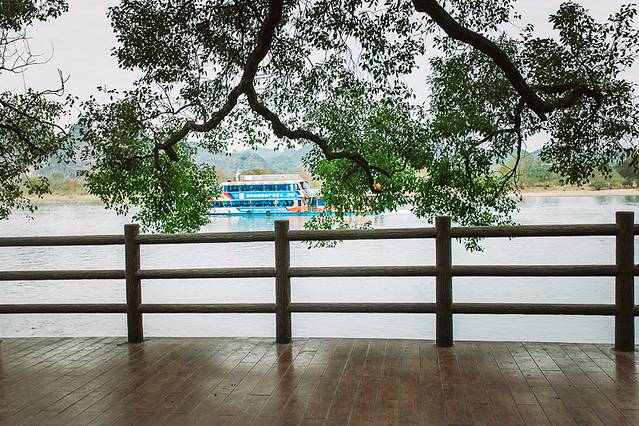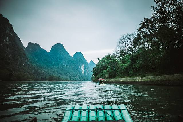 我们此行体验的是漓江风景区雁山段的风光,采用的当然是经典的竹筏漂流啦!不过初冬的季节,江面漂流,着实是个巨大考验,像我这种带着秋装来到桂林的外地游客,一路上江风凛冽,实在冻得不行不行的,只顾发抖甚至无暇顾及两岸风光。。。