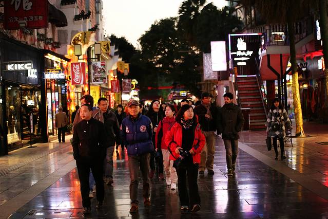 现在的正阳街,是桂林市一个具商业和游览双重特性的新旅游景观,它位于桂林市中心,南起杉湖北路与杉湖相接,北至解放东路与明王城正阳门相连,东伴举世闻名的漓江,西邻中心广场,全长六百六十六米(暗合中国民间"六六大顺"的口彩),步行道宽度十二米至十四米,路面是朴实古雅的青石板。 看正阳街汇集中西风格的建筑,赏繁华美丽的街市灯火,吃着桂林特色风味小吃,踏着古味浓郁的青石板路,五花八门的商品,时尚与古典并存,前卫与传统同在,身在其中,乐不思归。