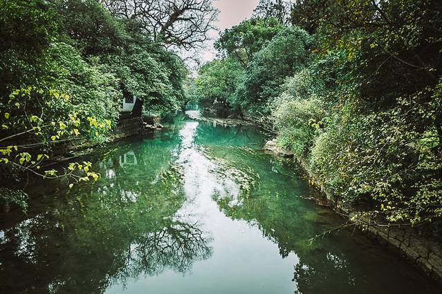 神龙不见首也不见尾,碧玉带一般缓缓流过雁山园。