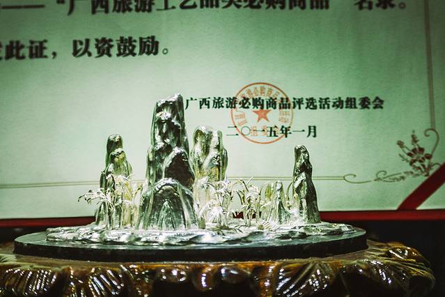 漓江山水为蓝本,制作的全手工银质装饰品。