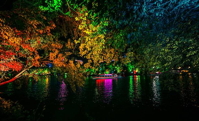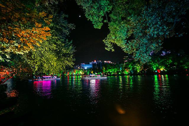 两江四湖:千山环野立,一水抱城流。桂林的两江,一为漓江,一为桃花江。四湖便是:桂湖、榕湖、杉湖和木龙湖。中国古典式园林,天人合一的生态园林,宋历史文化园,顺着江边游览,就可以一一体味,而桂林深厚的历史文化、优美的自然山水、良好的生态环境在就在这两江四湖环城水系中得到完美、和谐的统一。