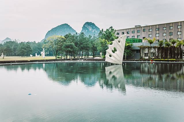 愚自乐园,由台湾企业家曹日章先生于1996年开始筹设,是一座结合桂林市秀逸天纯地理景观与全球杰出艺术家创作心血,以洞窟艺术与当代雕塑为主的大型国际地景艺术公园。有“东方卢浮宫”的美誉。坐拥八千亩山水奇景,集艺术创作、展览、交流、会议、培训、休闲于一体,以其绝美的自然风光和浓郁独特的艺术氛围成为世界顶级的创作基地与度假胜地。愚自乐园的最终目标是要“创造一个可与敦煌石窟相媲美,能反映当代人类生活的历史洞窟”。