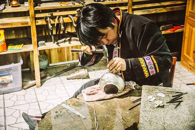 大银工坊,以“承继传统文化,传播华夏文明”为使命,坚持“文化创造价值”的理念,从事民族手工设计与制作已二十余年。2013年由大银工坊首席设计师杨焕龙大师倾心打造的“朽木逢春壶”在“首届中国民族工艺美术珍品展”上,荣获“中国民族工艺美术神工百花奖”银奖。近期,大银工坊开发的“大银银饰系列”产品被广西区旅发委评定为“首届广西旅游必购商品”。