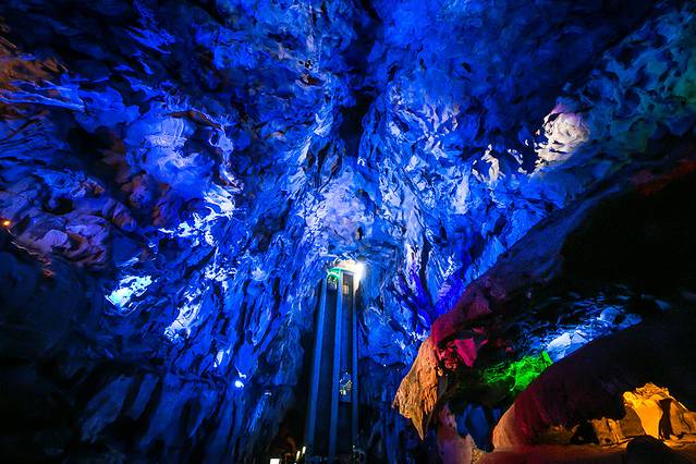 ②游览方式独特:观光滑道、步行、洞内有轨列车、地下河小木船、观光电梯5种游览方式。其中观光电梯高达36米,是“亚洲溶洞第一梯”;观光滑道亦是世界吉尼斯纪录保持者。加上我们来之前的单车骑行,走出景区的电瓶车,和下午的竹筏漂流,一天体验了八种交通方式!实在太奇妙!!!