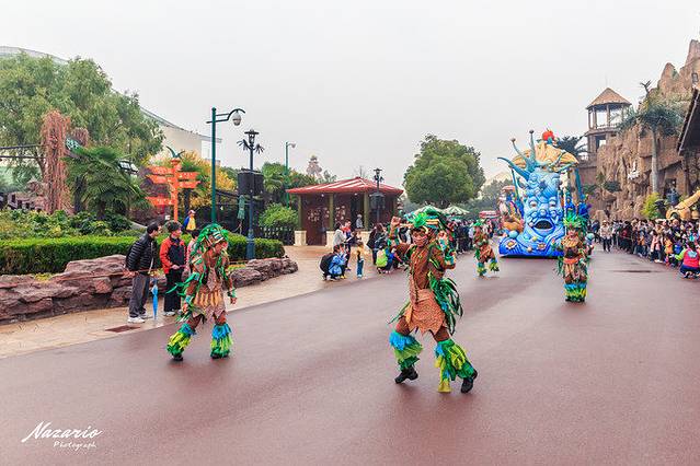 看过恐龙园的花车大巡游,感觉真心很棒,豪华瑰丽的花车方阵、激动人心的歌舞表演,带来超震撼的视觉体验。 来自国外的舞者也带来了别样的异域风情!