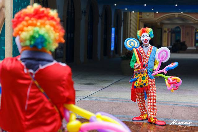 虽然天气不是很好,还带着一丝小雨,小丑们仍不断的为游客们活跃着欢快的气氛!