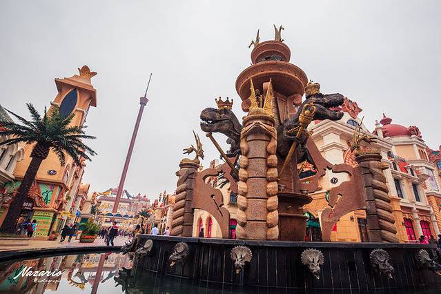 无处不在的恐龙元素,喷泉、路灯、路牌......,配着巴洛克风格的建筑,又仿佛回到古欧洲大陆!