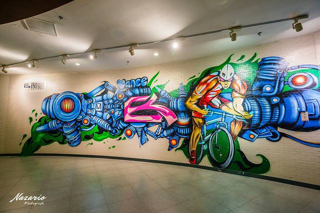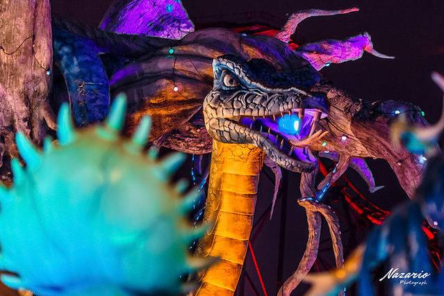 无处不在的恐龙雕塑,在灯光的照射下,色彩非常的炫丽!