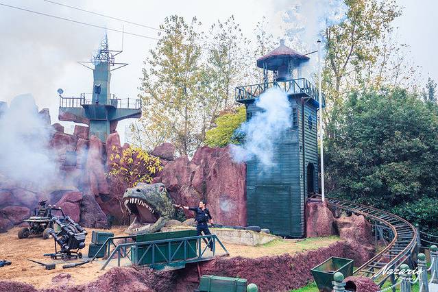 结束完丛林探险,根据演出的时间表,我们奔向了嘻哈恐龙城边上的特技表演舞台!远远的看着4D过山车,不断飘来游客们阵阵尖叫!