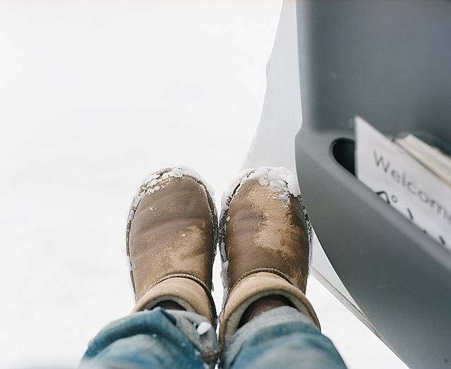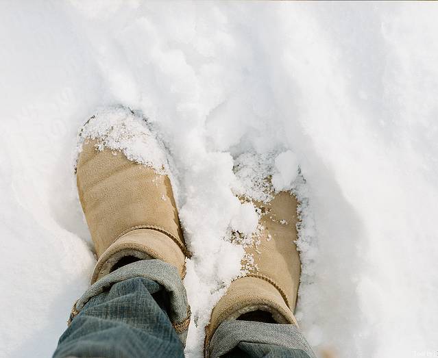 长时间在雪里走雪靴会湿 所以卤煮提前喷了防水喷雾 不过到第七天时还是失守了TT