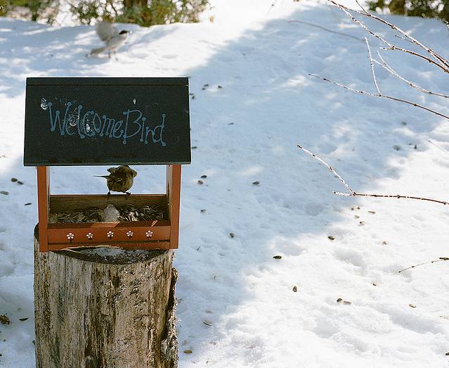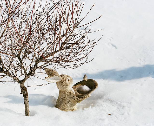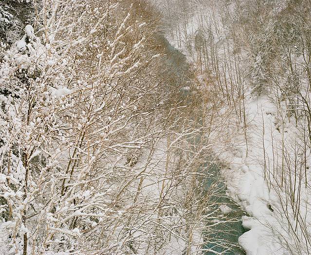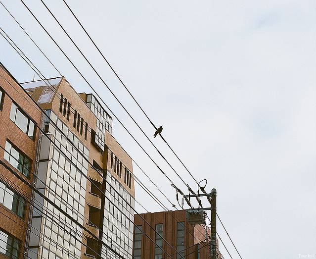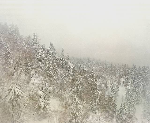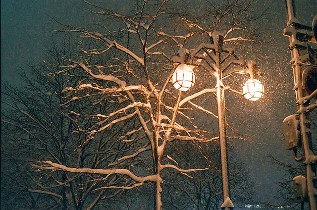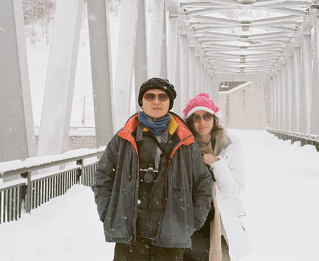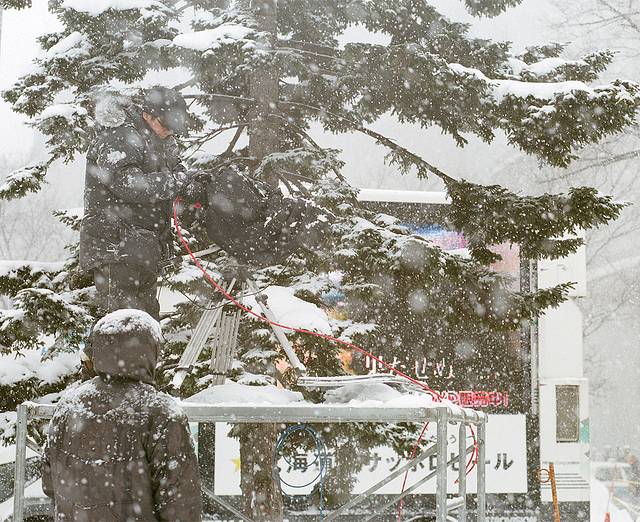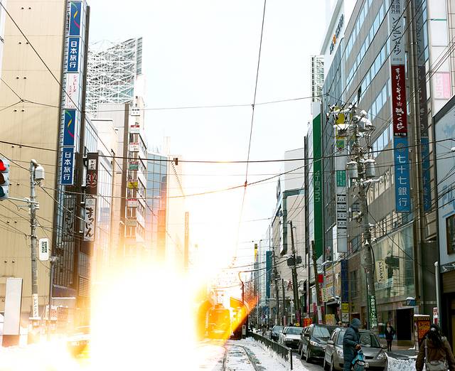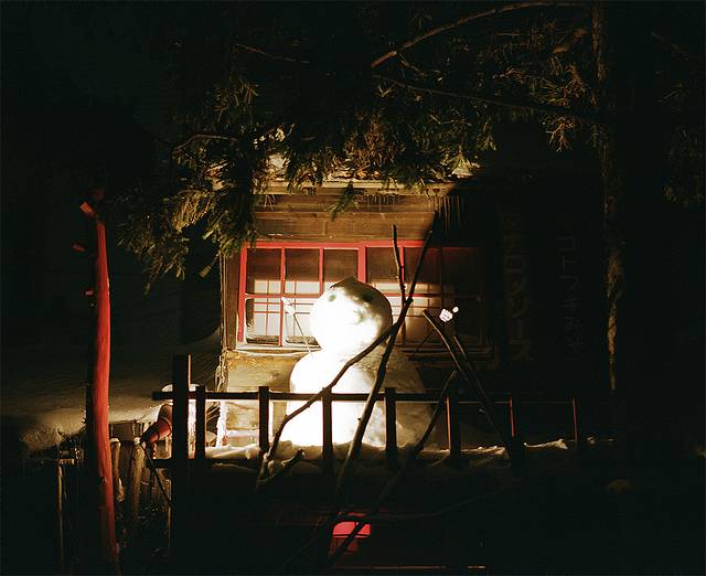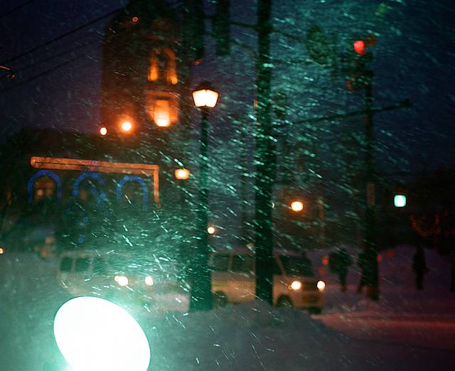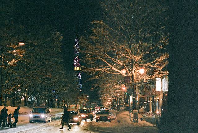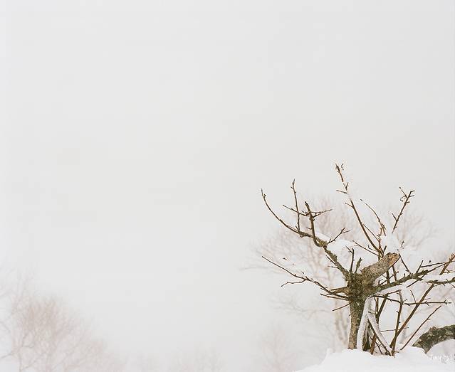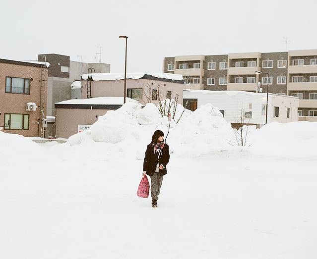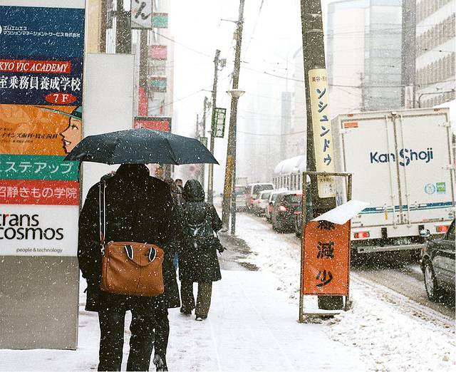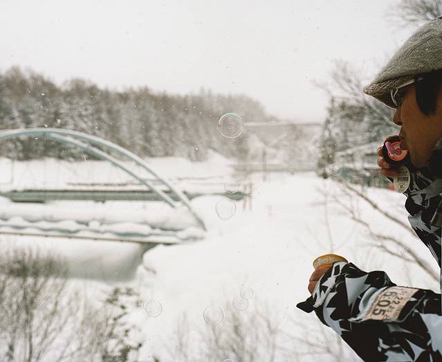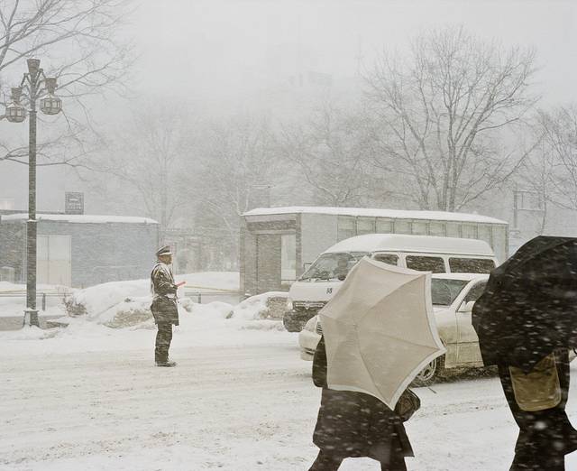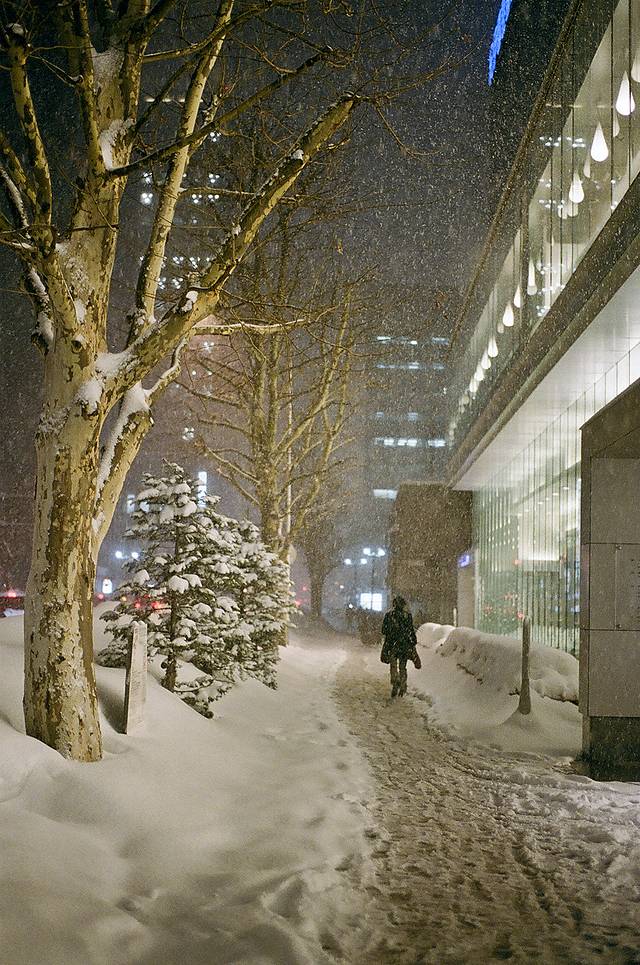 其实怎么会想要当街照相呢 话说那时雪还在下 而天也越发晴朗起来 云层中透着一点微光 走在西四丁目上 抬头透过雪伞看到雪花在阳光中落下....那一瞬间 真的很像电影画面 苦于不知如何才能表达 这样才产生了这张照片的想法