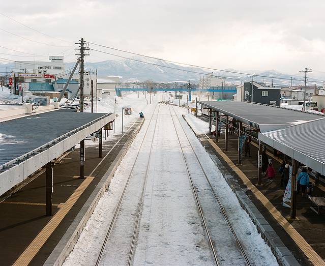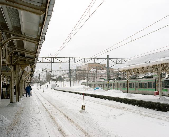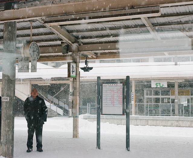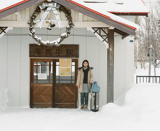 到达美马牛 其实美马牛是个无人小车站 到冬季就更加冷清 来这里原本是为找一家叫做【Gauche】的咖啡馆和一家绘馆 不过真到了才发现腿脚的不便 再加上拖着一堆行李 于是干脆在车站拍张照片然后乖乖坐在车站里等下趟列车