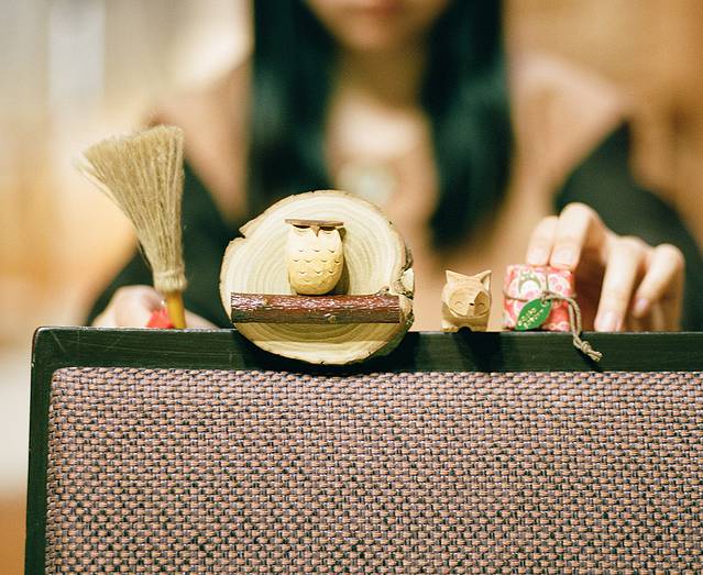 店里除了老板娘还有位可爱的欧吉桑 我进去时他正在写着什么东西 看到我好奇地四处张望 欧吉桑居然端起他的咖啡和小饼干询问后礼貌地坐到我对面 并且努力地试图用英文单词和大多数听不懂地日语向我介绍店里的小物件来自何方 大叔特诚恳 虽然不明白还是得努力点头啊 不过眼看交流实在困难我便拿出事先准备好的必杀技 便签和笔 毕竟中日文很多汉字形似 【笔谈】确实是十分实用的交流手段 这个杀手锏后来帮了我许多忙