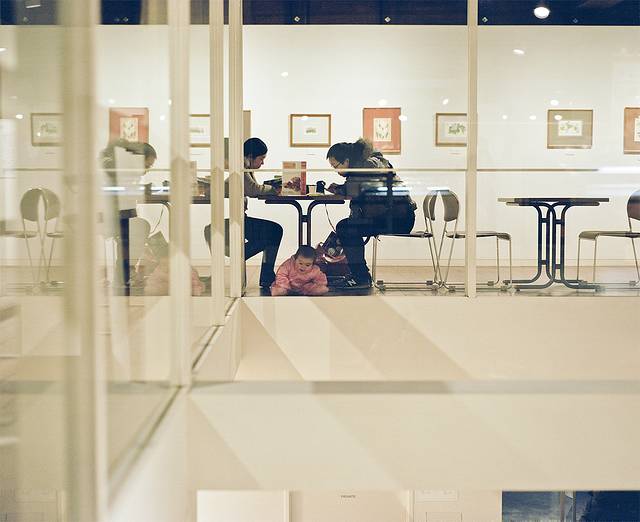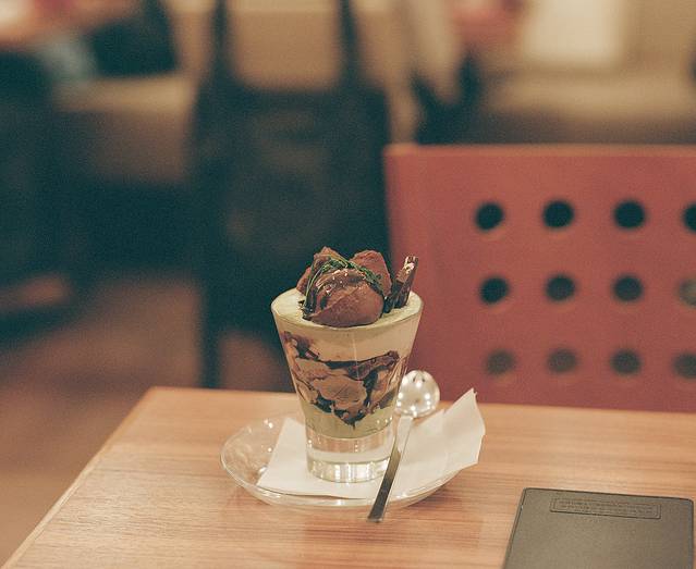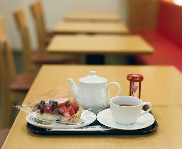 T cafe' 里 两三对情侣坐在窗台上说着悄悄话 买一杯饮料坐在窗前 时间好像忽然就慢了一点