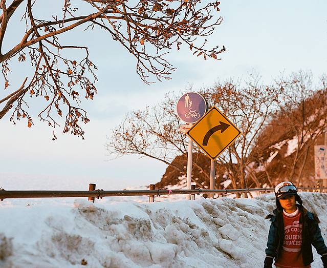 从神宫的另一出口跟着一排前人的脚印居然走上一条十分非主流的雪路 T^T