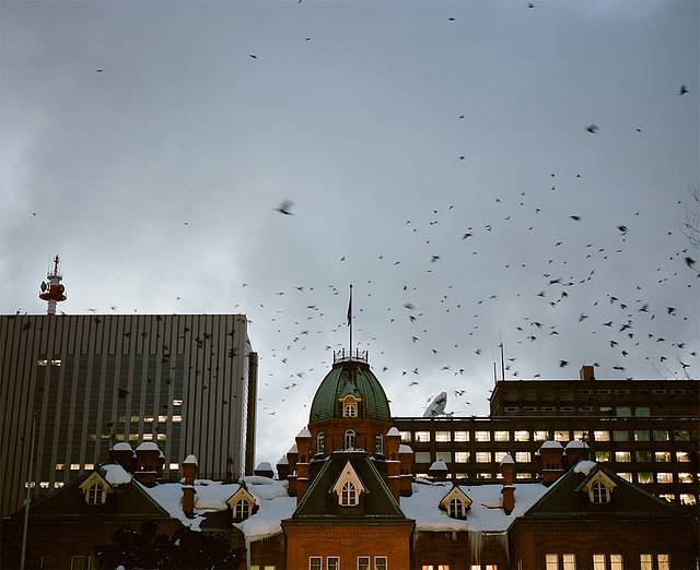步行回酒店时路过北海道旧厅 然后惊喜地看到了漫天的乌鸦 全都是乌鸦啊亲 货真价实~!