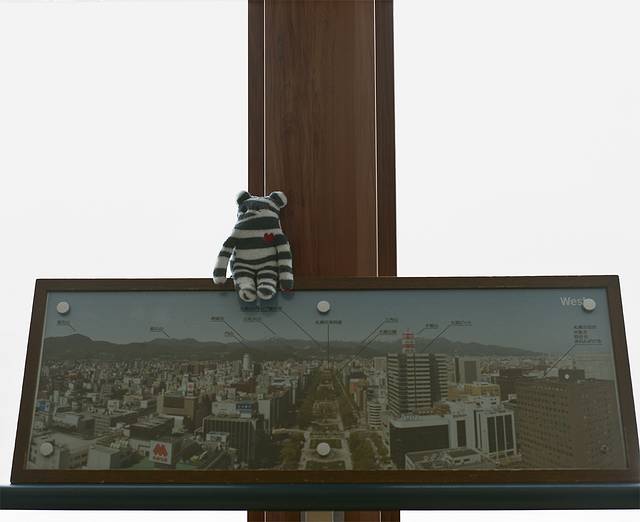 在电视塔1层看到娃娃机 花了200JPY就拿到这只小熊 因为雾大雪大 实在照不清楚街景 干脆让他和介绍牌照相吧 喏 天气好时看到的应该是介样子滴