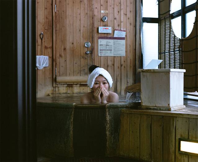 民宿里提供非常不错的家庭风吕 岩石边放着的小鸭子实在可爱 如果是在夏天 还会开放露天风吕