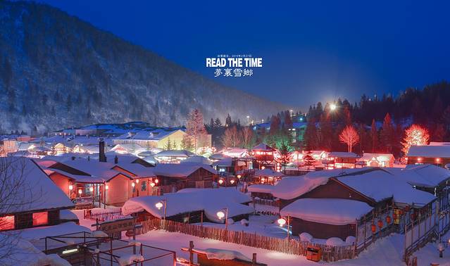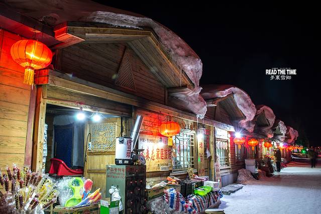 雪乡的日落大概在4点半左右,3月初期的时候拍夜景在5点的时候比较适合,雪乡的灯笼一般是4点半的时候开起。