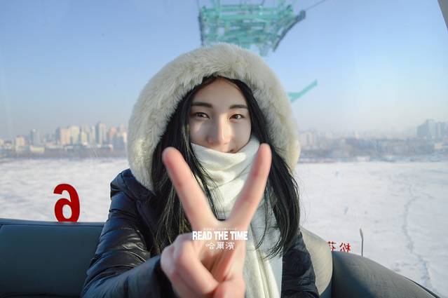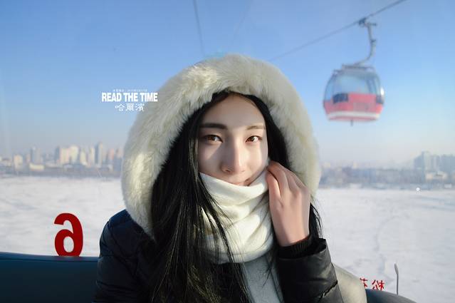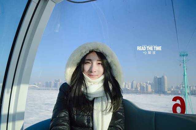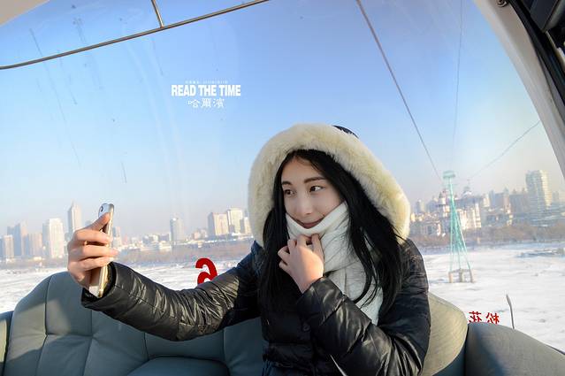 下午的时候坐索道返回道里区,索道管理人员说我们的票是可以坐VIP车厢的,弄的我俩很是迷糊,捡到的便宜还是享受一下所谓的VIP吧,在车厢里Y开始自拍,而我开始拍她。