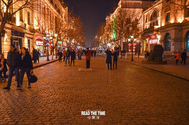 中央大街的地砖是用花岗岩铺成的,经历百年历史,无数行人的踩踏依旧完好。
