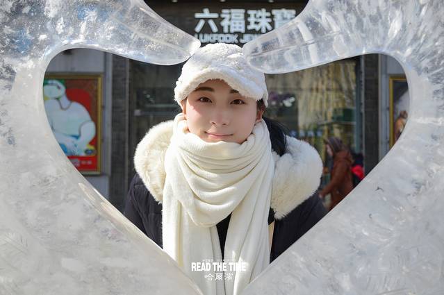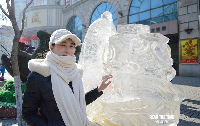中央大街上散落这零星几个小型冰雕,手触摸的时候很是光滑,我们俩研究了一番,总感觉不像是冰。