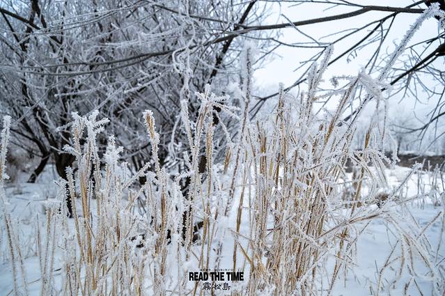 当天来到雾凇岛的时候,在这天早上形成了雾凇,根据统计这个冬天的雾凇行程加起来一共有70天。大家可以度娘一下雾凇形成的原理,以便更好判断雾凇是否出现。我和Y这次来到雾凇岛也算比较幸运了,第一天下午到,第二天早上就形成了雾凇,量也比较大。