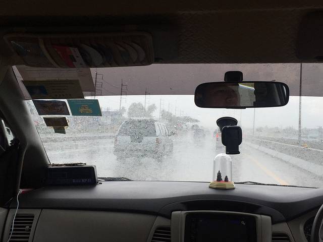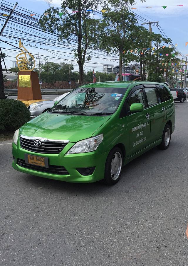 据说廊曼机场其实距离市区很近,也据说从到达大厅外面出发(乘坐出租车请一定记得说“请打表,by meter”)或者在机场到达大厅有个小岗亭都可以租到打表的出租车。大部分市区到DON MUANG都是200-250铢间,但是如果从Don Muang出来,还有50铢收费+30~40铢高架费用。也就400到达市区.但我们出来后就直直的看到有个紫色的texi service柜台,一问四大一小需要包量大的商务车,要1000b,普通五座的850b,狂后悔没提前在去哪儿上订,只要117块rmb!攻略也不是那么可信啊,80梦想到城里是不可能了。上车后,司机还要问我要不要走高速,告诉可以省20分钟路程,但要另外交120b过路费,哎呦,还嫌我被宰的不够惨吗?不要高速!不过下面是真的堵,堵城啊!