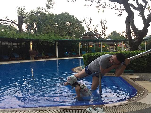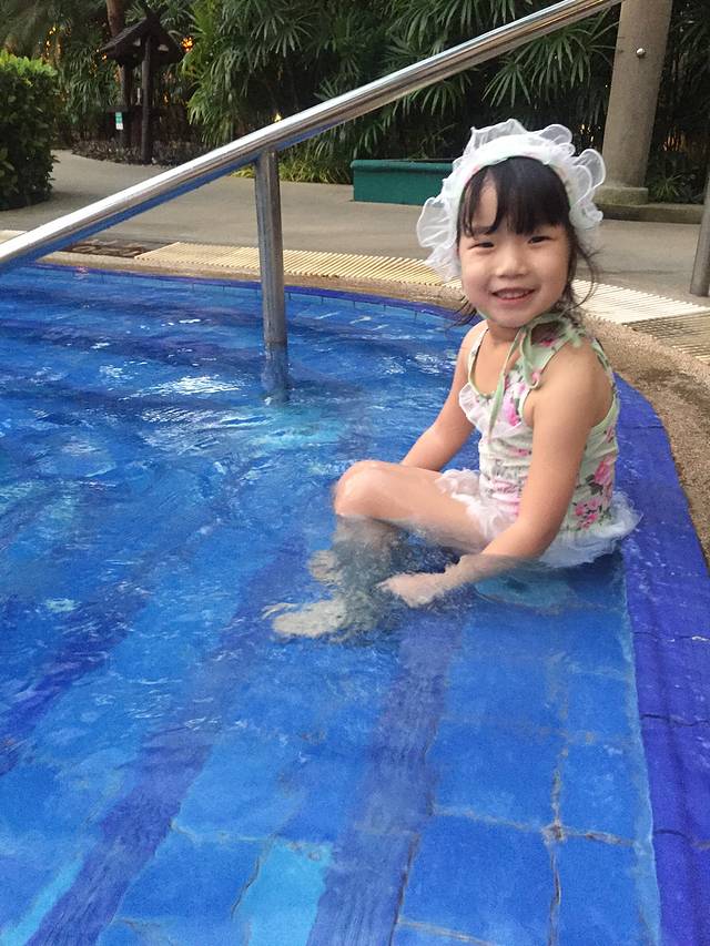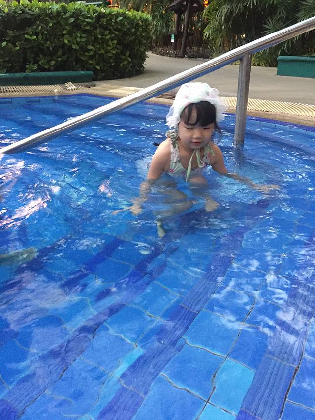 水温虽然很低,但女儿对泳池的向往已大过切!跳!you jump!I can't jump!哈哈