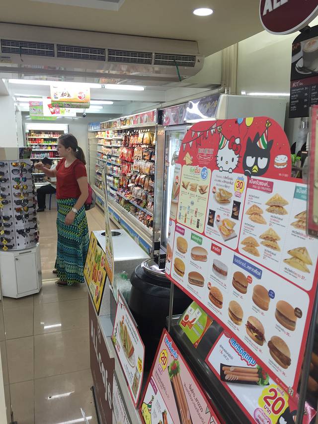 从酒店出门右拐向前200米就有一个7-11,售卖的东西很多,买了一堆包子、豆浆、泡面,三明治才169B,很方便的说
